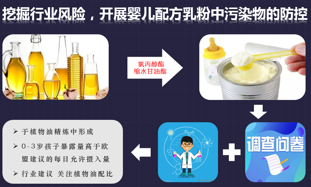 开展了婴幼儿配方粉及其原料中氯丙醇酯和缩水甘油酯、氯酸盐和高氯酸盐的污染水平研究 ,助力企业更好地控制原料品质提高产品质量;同时开展了污染物残留水平的风险评估,为制定合理的、适用于我国国情的产品限量法规提供了有效的数据支撑。